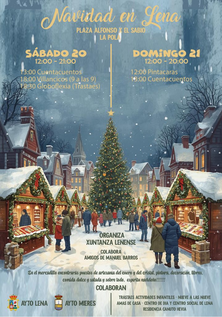 La propuesta se materializará en un Mercadillo Navideño que se celebrará los días 20 y 21 de diciembre, sábado y domingo, en la Plaza de Pola de Lena, con horario de 12:00 a 20:00 horas, tanto en jornada de mañana como de tarde. El horario podrá adaptarse en función de las condiciones meteorológicas o de la afluencia de público.